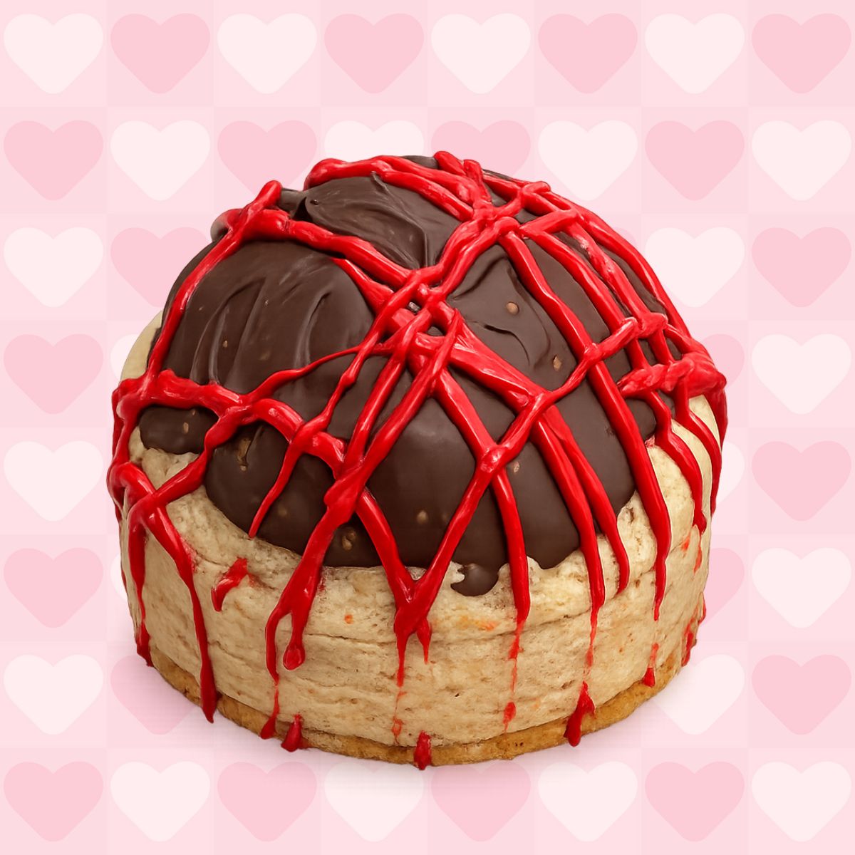 A bold vanilla-bean cookie loaded with tart freeze-dried strawberries and cherry chips, wrapped around a molten cherry-and-chocolate ganache core. A perfect mash-up of cherry, strawberry, and chocolate—bright, indulgent, and unapologetically extra.